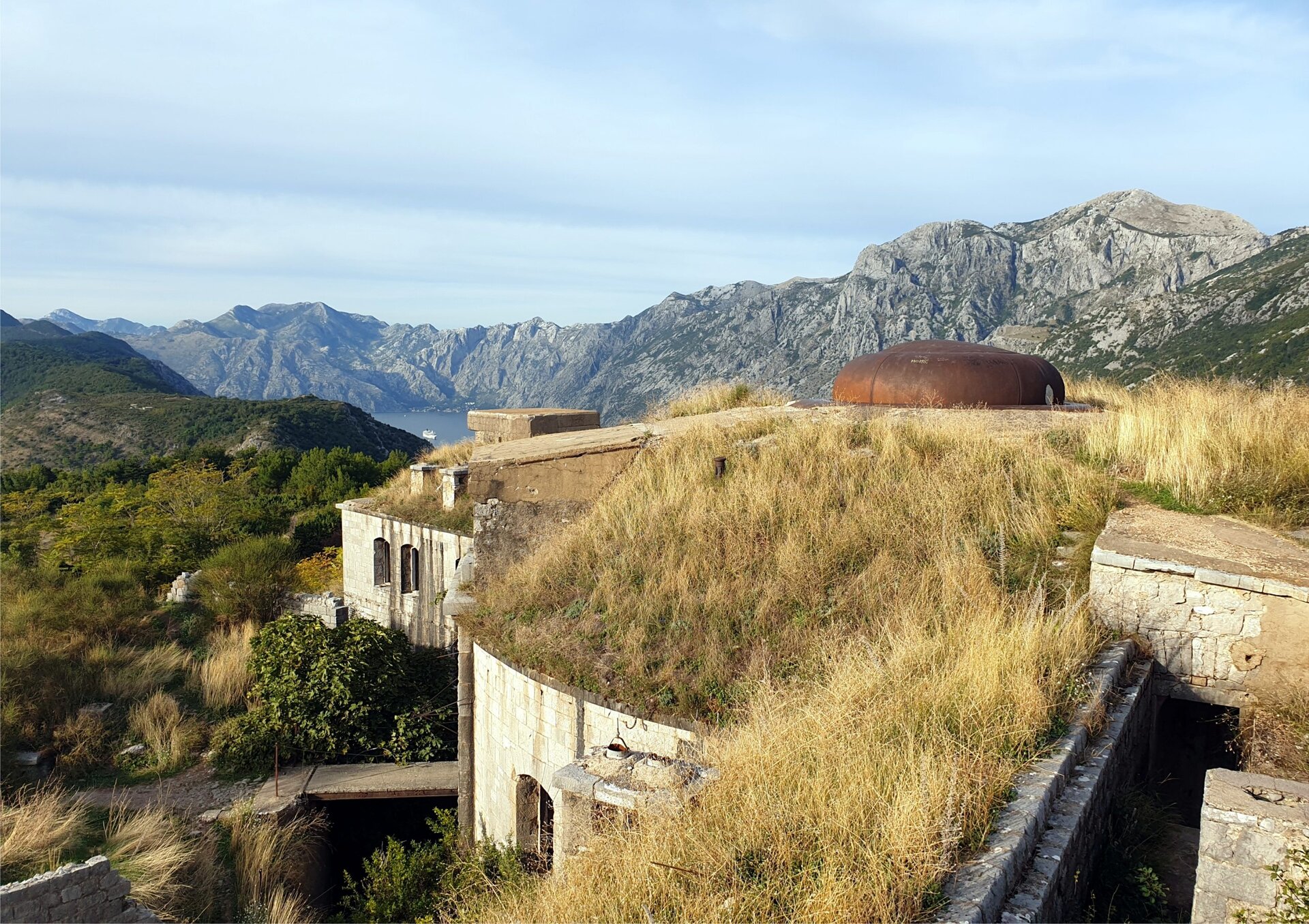 Das dritte Land Ihrer Reise ist Montenegro. In Kotor, dem einstigen k.u.k. Kriegshafen Cattaro rebellierten 1918 etwa 3000-3500 Matrosen gegen die unhaltbaren Zustände in der österreichischen Flotte und hissten rote Fahnen. Auch das ist in den Geschichtsbüchern dokumentiert. Weniger bekannt sind hingegen die vielen Küstenbatterien und Forts, welche den Kriegshafen, in der von hohen Bergen umschlossenen Bucht schützen. Hier sind bis heute in einigen Werken Skoda-Panzerkuppeln erhalten geblieben.