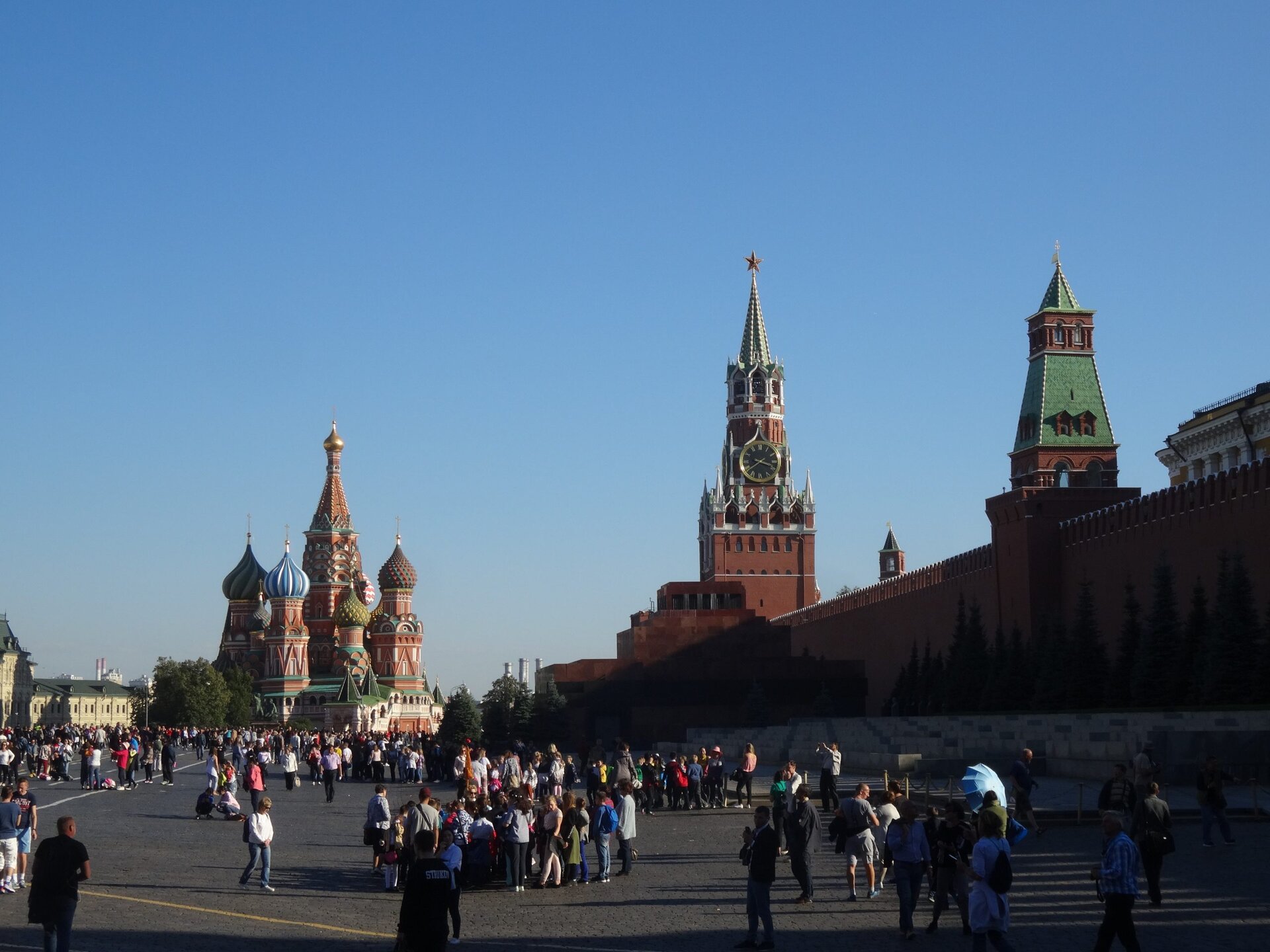 Sie fahren zum Roten Platz (UNESCO-Weltkulturerbe). Dort ist Zeit für einen Spaziergang entlang der Kremlmauer und vorbei am Lenin-Mausoleum. Sie können auch durch das berühmte Kaufhaus GUM schlendern oder die Basilius-Kathedrale besuchen (optional).