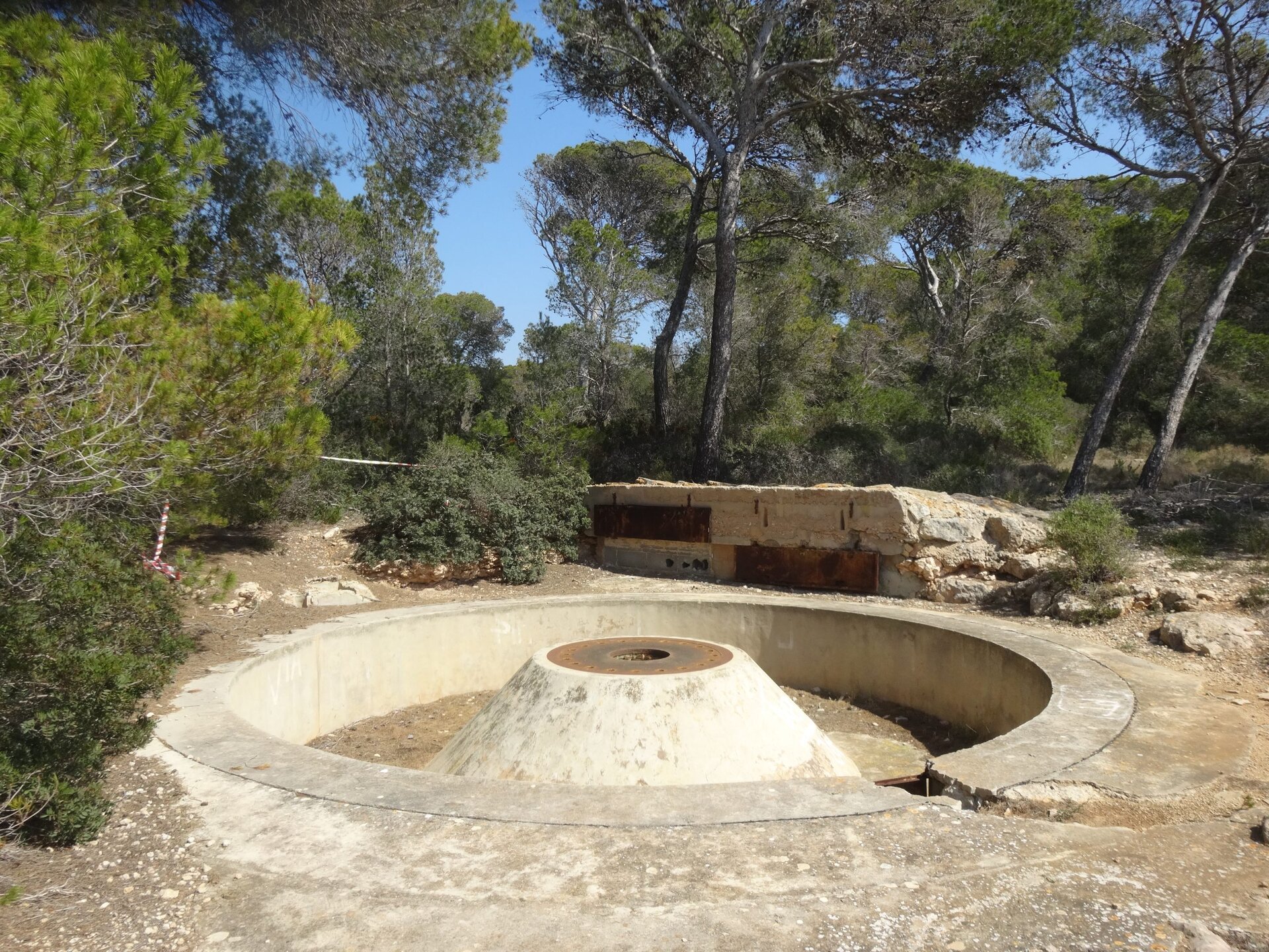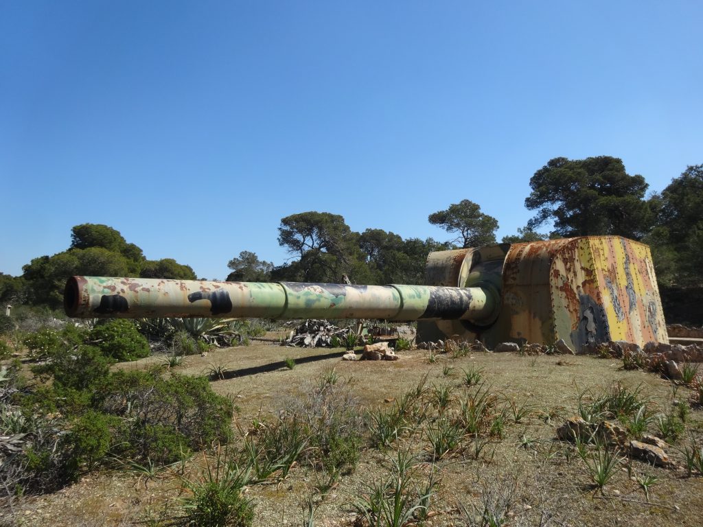 Später machen Sie Halt an einer weiteren Batterie sowie an einer Flak-Batterie. Auch diese Anlagen sollten die Bucht von Palma schützen. Zu sehen sind u.a. noch erhaltene Wachgebäude, betonierte Laufgräben, Magazine, Fragmente von Munitionsaufzügen und Geschützbettungen.