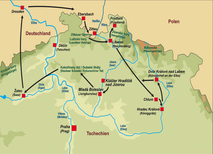 Hinreise: 02730 Ebersbach (Veranstalterbüro) – Zittau – Liberec (Reichenberg).